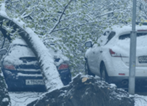Ukrajinská bouře dorazila i do Ruska: silný vítr láme stromy (foto výše), je zima a sněží.
