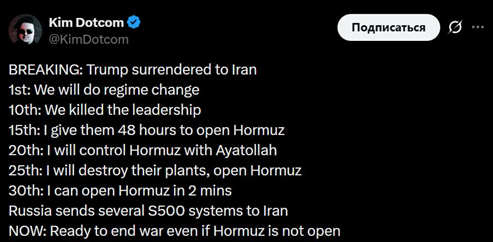 „Aktuální zpráva: Trump se vzdal Íránu,“ – německý podnikatel Kim Dotcom.